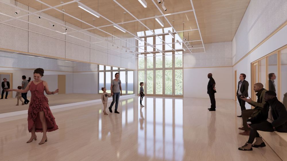 Opening in June 2026, the dance studio is a dedicated rehearsal and classroom space excellent for workshops, staged readings, classes, meetings, breakout sessions, and intimate dinners. The studio features hardwood floors suitable for dancing, wall-length mirrors, and full wall windows with natural sunlight and stunning views. An event in this space will feel intimate, elegant, and special. This space is conveniently located near the Cookie and Lindquist Classrooms, which can be rented separately.